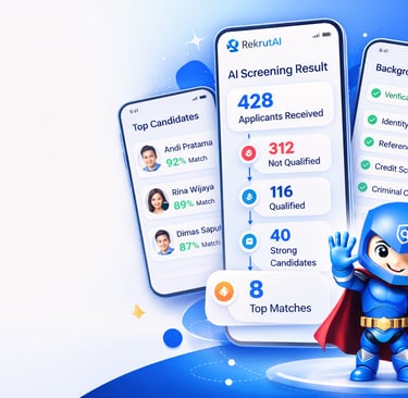 Dengan RekrutAI, tugas rekrutmen yang memakan waktu bisa berjalan otomatis memberi Anda ruang untuk fokus pada keputusan hiring yang tepat.